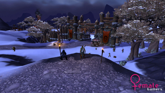 Ik beland bij de wereld waar mijn garrison gebouwd gaat worden. Het beangstigd me een klein beetje wanneer ik af en toe een klein beetje lag heb en duim dat het goed blijft gaan. De wereld is wit en vol met peons, werker orcs, die voor mij maar wat graag willen werken. Er verschijnt een glimlach op mijn gezicht wanneer ik de NPC peon aantik en hij antwoord met: I’m not that kind of orc!. Ik zet de peons aan het werk en ondertussen ga ik de strijd aan met wat monsters om mijn nog te bouwen garrison veilig te stellen. Wanneer ik de quests heb afgerond begint het bouwen van mijn garrison dan echt. Ik vind het prachtig om te zien hoe er een eigen vesting speciaal voor mij gebouwd wordt. Als een Orcisch lady wandel ik door mijn veste en bekijk de NPC’s die er wonen en werken. Sommige NPC’s zijn wat kortaf en druk aan het werk anderen hebben wat meer te vertellen of willen me iets verkopen. Ik vind de brievenbus bij mijn innkeeper en de flight master vlak bij de ingang van mijn garrison.