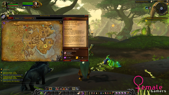 Wanneer ik mijn game opstart en ik mijn orc hunter JadziaShachi met haar pet “Boar” zie merk ik dat ik al een band met haar begin te krijgen. Ik heb er weer helemaal zin in zeker omdat ik weet dat ik net zolang doorga tot ze een level hoger is. Ik stap de jungle in en ga zo quest voor quest steeds verder. De ene quest leert me hoe ik een NPC moet beschermen en volgen, de andere quest zorgt ervoor dat ik een apparaat moet bedienen en zo een vestiging beschermen of verdedigen. Iedere quest zorgt er ook voor dat je bepaalde talenten unlocked. Zo krijg je alles stap voor stap mee en zie je hoe je character groeit en ontwikkeld.