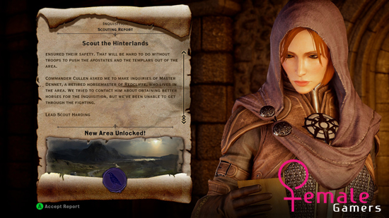 Binnen de game heb je uiteraard verschillende missies waardoor je de wereld verkend en steeds meer over het verhaal te weten komt. Door gesprekken aan te gaan met verschillende karakters binnen de game leer je ook het achtergrondverhaal vanuit meerdere inzichten kennen die je kunnen helpen bij het maken van beslissingen. Deze beslissingen maak je gedurende de game tijdens overleg met een van de vele adviseurs in je ‘Inquisition’.