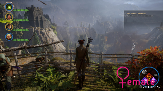 Wanneer je een gevecht aangaat kan je tijdens het spelen snel switchen tussen karakters die in je party zitten. Deze partymembers bestaan uit Cassandra, Varic en Solas. Je mag zelf kiezen wie er mee gaat en wie niet maar omdat je toch met zijn vieren kan spelen kies ik ervoor om ze allemaal mee te nemen. Hoe meer zielen hoe meer vreugd! Het switchen tussen partymembers gaat heel erg makkelijk en voelt erg natuurlijk aan. Je kan dit zowel doen terwijl je doorgaat met vechten. Het is gelukkig ook mogelijk om je gevecht op pauze te zetten, te switchen en voor iedere partymember alvast een volgende actie te activeren. Dit kan ook tijdens het sluiten van een rift en zorgt ervoor dat de missies binnen de game iets makkelijker worden.