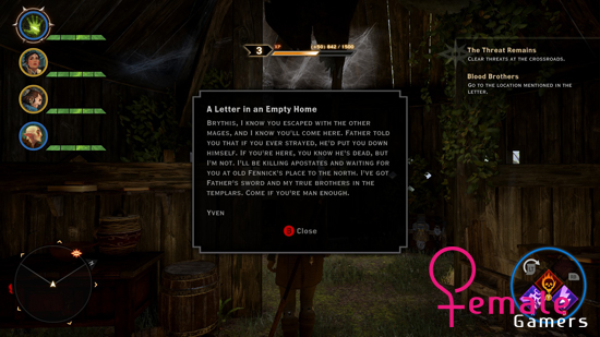 In mijn vorige blog kon je lezen dat ik als Qunari Mage mezelf moet bewijzen tegenover de wereld waar ik in stap. Cassandra is een van de karakters binnen de game die ik als eerst moet overtuigen dat ik een goed persoon ben. Op een aantal momenten krijg je de mogelijkheid om te praten met verschillende karakters. Zo groeit je band en kan je zelfs uiteindelijk relaties opbouwen binnen de game. Maar laat ik eerst maar eens zorgen dat ik een goed beeld van mezelf geef bij de verschillende karakters voordat ik liefdesrelaties aanga. Wanneer je al eens eerder een Dragon Age game gespeeld hebt herken je het vast wel. Je gaat naar een karakter en wanneer je met ze praat kan je soms op wat meer informatie klikken, dit heet binnen de game ‘investigate’. Hierdoor krijg je ook meteen wat achtergrondverhaal over de game en de gebeurtenissen in het verleden en heden, wat ontzettend handig is maar daarover later meer. Ik heb dus de afgelopen tijd een volledige charme offensief gebruikt tegenover o.a. Cassandra en ik denk dat ze me inmiddels wel mag. Hoe verder het verhaal volgt hoe meer karakters er bij komen.
