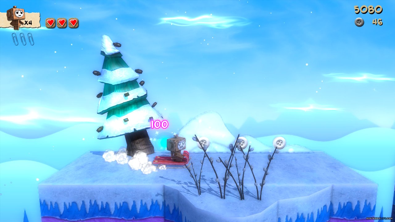 Wat voor speciaals hebben de levels nog meer? Zoals ik al zei verander je soms in een duikboot of helikopter. In de duikboot levels ben je onder water en de helikopter levels vragen veel van je vliegkunsten. In het Winterwonderland gebied wordt je soms op een slee gezet en ga je al glijdend door een level terwijl je over gaten en vijanden springt.