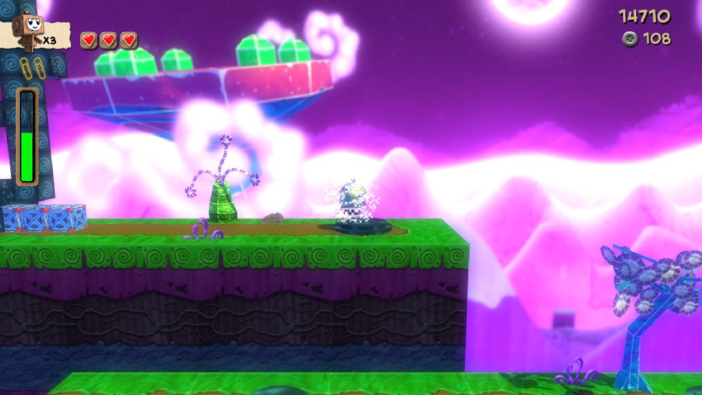 In elk level kun je maximaal drie paperclips verzamelen. Ook verzamel je zilveren knopen en punten door vijanden te verslaan of gewoon door het level te lopen. Er is ook in elk level een gouden knoop te vinden die soms goed verstopt zit! Daarnaast kun je levens vinden en health. Wanneer je door vijanden geraakt wordt gaat er wat van je leven af. Na drie keer geraakt te worden ga je dood en ontplof je in een confetti vuurwerk, wanneer dit gebeurt spawn je weer in een level bij een opslagpunt, wat vaak bij een papieren windmolentje is. Als je al je levens verspilt hebt en dus helemaal dood bent kom je weer aan het begin van een level terecht.