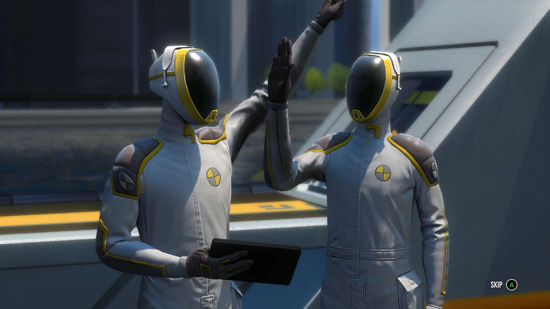 De sfeer en omgeving van ScreamRide vallen me behoorlijk tegen. Alles heeft een inspiratieloze “futuristische” sfeer om nog maar te zwijgen over het herhalende deuntje op de achtergrond. Dit had veel spannender gekund wanneer de designers films zoals Star Wars, Tron, Matrix etc herhaaldelijk hadden bekeken. Alles is heel steriel met hier en daar een drone en mensen in dezelfde testoutfits. Ik begrijp dat de game vooral over de rit moet gaan maar toch had hierin wel wat meer tijd en aandacht in mogen zitten. Daarnaast hadden de ritten met de juiste muziek net dat beetje extra spanning gekregen. Ik bedoel, niets werkt beter dan bij de start een passend deuntje zoals bijvoorbeeld Fuel van Metallica, maar ik begrijp dat zoiets te duur is om te regelen.