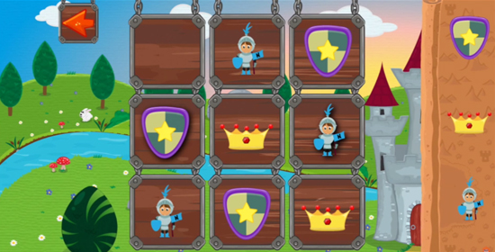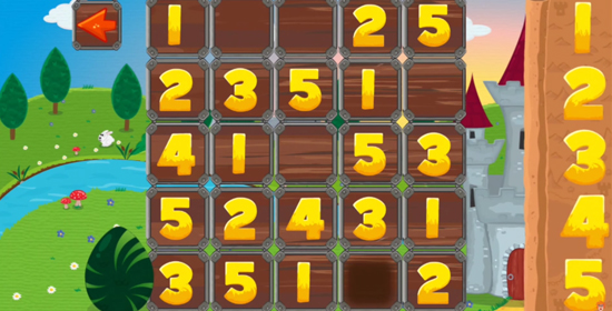 Ik haal de gemakkelijkste versie tevoorschijn en leg haar uit wat de bedoeling is en al snel pakt ze het spel Sudoku op. Ze kan er zelf voor kiezen om de puzzels met cijfers te spelen of met de icoontjes ridder, kasteel, kroon of schild. Uiteraard kiest ze voor het laatste gewoon omdat dit er vrolijker uit ziet. Ik vraag haar of ze me de game kan uitleggen en dit doet ze vol enthousiasme. Ze heeft het schatkist systeem ook al vrij snel door, hoe lees je iets verder.