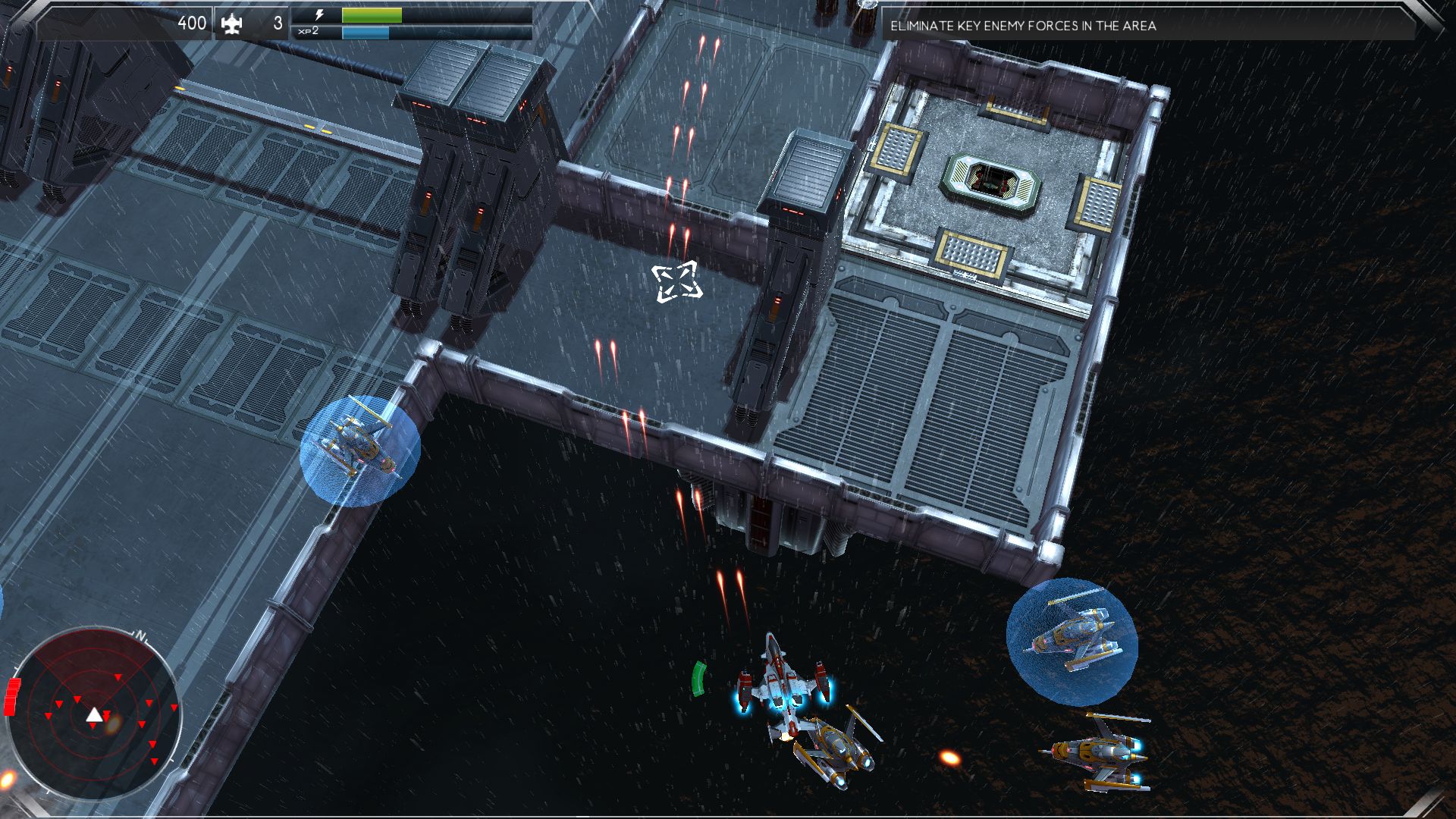 Wanneer je vijanden neerhaalt kun je soms verschillende powerups oppakken, maar dit gebeurd erg onregelmatig. Ondertussen krijg je xp voor het vernielen van doelen en vijanden. Hiermee kun je upgrades kopen zoals snelheid, wendbaarheid, speciale wapens en betere bescherming van je voertuig. Je krijgt doelen door via een satellietverbinding. Wanneer je deze doelen uitschakelt krijg je weer nieuwe doelen om uit te schakelen. Soms kun je naast je hoofddoel ook nog wat kleine zijmissies doen.