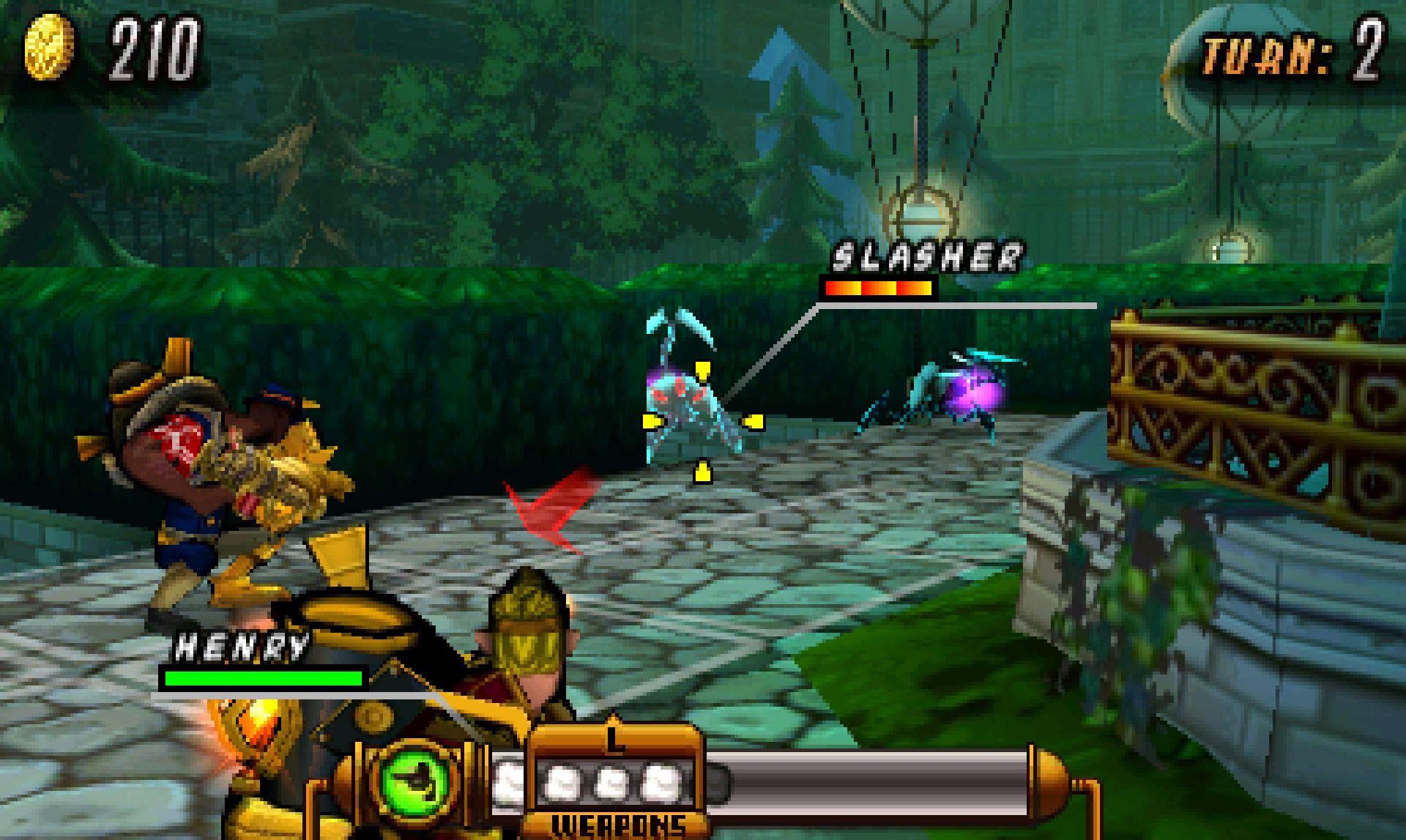 Het werkt namelijk als een soort schaakbord met allemaal vakjes waarin je vijanden staan en waarin jij je –afhankelijk van je stoommeter- vakje voor vakje naar ze toe moet bewegen. Maar als je vijand om een hoekje staat dan zie je hem niet omdat de camera niet meewerkt. Dat voelt natuurlijk heel oneerlijk, want de vijand kan jou wel zien en valt je aan, terwijl je daar niets tegen kunt doen. Er is geen map, je speelt dus eigenlijk blind.