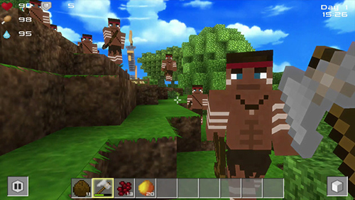 Als pixelblokkengame-beginner moest ik even slikken toen ik begon aan de Survival Mode van Cube Life: Island Survival. Je ziet rechtsboven in je scherm de tijd en hoeveel dagen je al gestrand bent en je eerste opdracht is kokosnoten zoeken om te drinken, want je gaat bijna dood. Nu lijkt deze taak op zich niet zo moeilijk, totdat je om je heen kijkt en alles vierkant is. Een ronde kokosnoot vinden op je kleine eilandje word dan al snel een uitdaging. Ook zwemmen naar een naburig eilandje werpt geen vruchten af voor mij en ik ga dan ook vijf keer dood in het eerste kwartier dat ik de game speel. Uiteindelijk word mij duidelijk dat ik op de vierkante bosjes kan slaan met mijn stok, of wat is het eigenlijk? En warempel, ik vind twee kokosnoten.