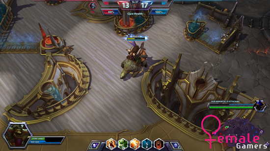 Om de eerste potjes niet huilend je bijl, geweer, zwaarden of pijl en boog neer te gooien is het belangrijk om te trainen. Tijdens de training leer je wat meer over de besturing en leer je jouw held goed kennen. De helden waar je mee kan spelen zijn opgedeeld in makkelijk, gemiddeld en moeilijk. Er is ook voor iedereen een held te vinden die leuk speelt. De helden hebben ieder hun eigen rol om te spelen zo zijn er de sluipmoordenaars, de krijgers, ondersteunende helden en de specialisten. Allemaal komen ze uit een Blizzard game en dat betekend helden met humor. Zo kon ik ook aan de slag met de Tauren E.T.C. die zijn vijanden verslaat met een daverend rock concert! Tijdens de training maak je ook meteen kennis met verschillende gevechtarena’s die allemaal even prachtig of gruwelijk zijn. Iedere arena heeft naast zijn hoofdmissie, het verslaan van het andere team, kleine extra missies die je helpen bij het winnen van de wedstrijd of een leuk zakcentje opleveren.