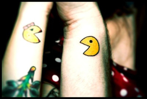 Waarom een trouwring als je Pac-Man en Mrs. Pac-Man op je lichaam kan vereeuwigen? Je kan het natuurlijk ook als extraatje erbij nemen dan alleen een set ringen! Gevonden op Pinterest, officiele website fyeahtattoos.
