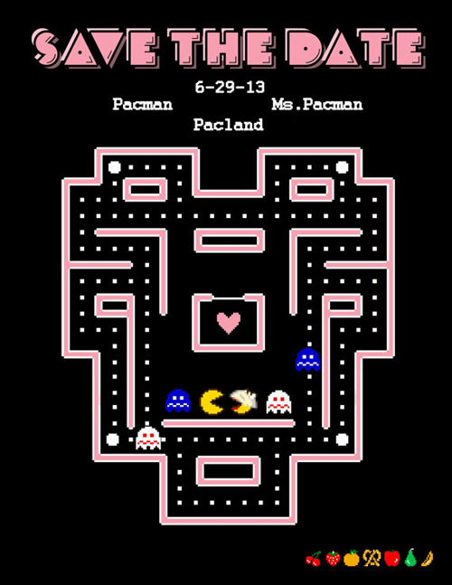 Ga je trouwen? Gefeliciteerd! Om je gasten alvast de dag vrij te houden wanneer jij gaat trouwen kan je een ‘Save the Date’ kaart sturen. Natuurlijk geinspireerd op Pac-Man. Deze Save the Date kaart kan je beter bekijken via Etsy: ArtNerdForHire