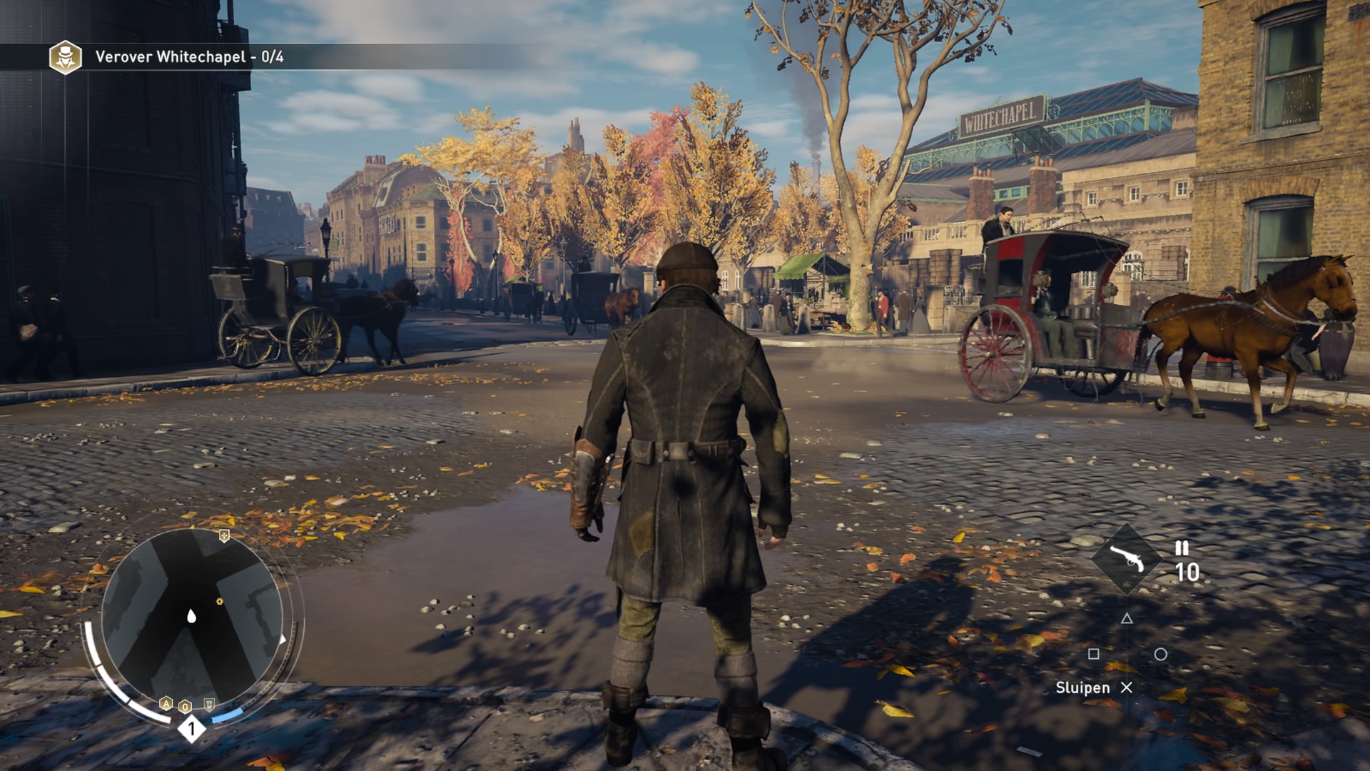 Tijdens het spelen verdien je XP, dit verkrijg je door specialisaties vrij te spelen, menigte-evenementen op te lossen, herinneringen en activiteiten te voltooien. Voor elke 1000 XP krijgen zowel Jacob als Evie een vaardigheidspunt waarmee ze nieuwe vaardigheden kunnen kopen. Uiteindelijk stijg je dan in niveau om betere uitrustingen te gebruiken. Waaronder de super toffe grapple pistool. Dit pistool brengt je razend snel op de hoge plekken in de stad. In dit deel is het de bedoeling dat je de wijken in Londen verovert van de ‘Blighters’. Door deze veroveringsactiviteiten te voltooien ontvang je weer XP. Een zeer leuk onderdeel van de game, zo kun je zelf beslissen of je de gebieden insluipt of juist gelijk met de vuisten op iedereen gaat in slaan. Zelf koos ik in de meeste gevallen om de gebieden vanaf de daken te veroveren. Wat ook nieuw is zijn de voertuigen in de game; zo kun je rijden in paardenrijtuigen en kun je op de trein stappen.