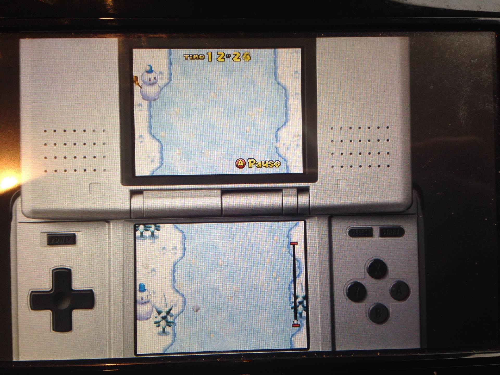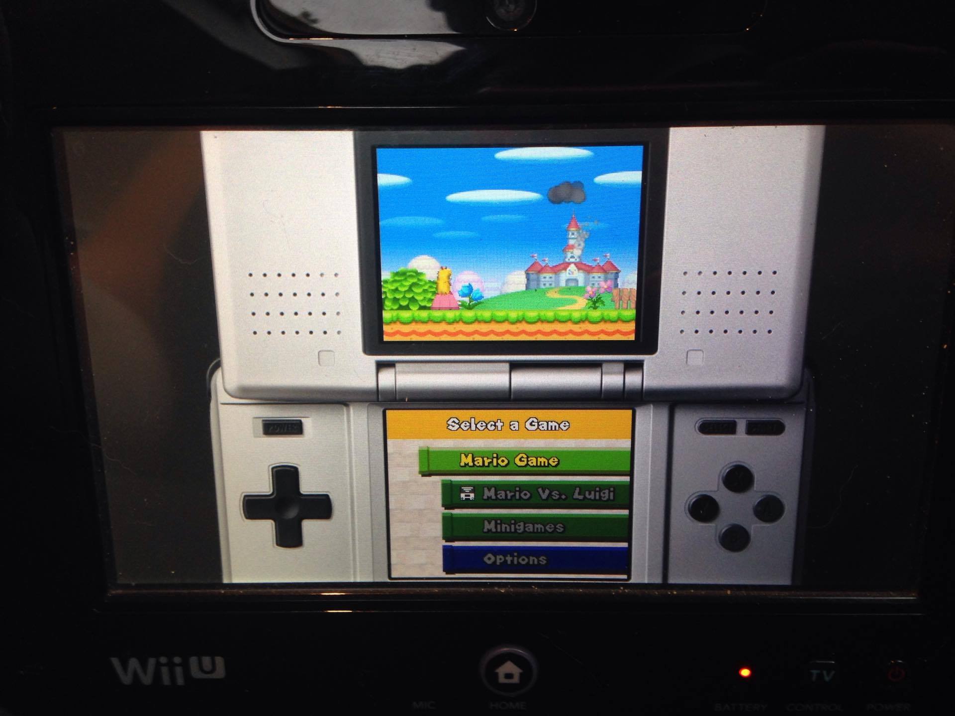Als je het spel start krijg je een DS op je touchpad. Die naar mijn mening wel erg klein is. Met die ds bestuur je dan het spel dat zowel te zien is op je touchpad als op je beeldscherm. Er zijn mogelijkheden om je beeldscherm niet in te stellen als DS zodat je alles wat groter kunt zien. Je kunt de prinses gaan redden als Mario of Luigi.