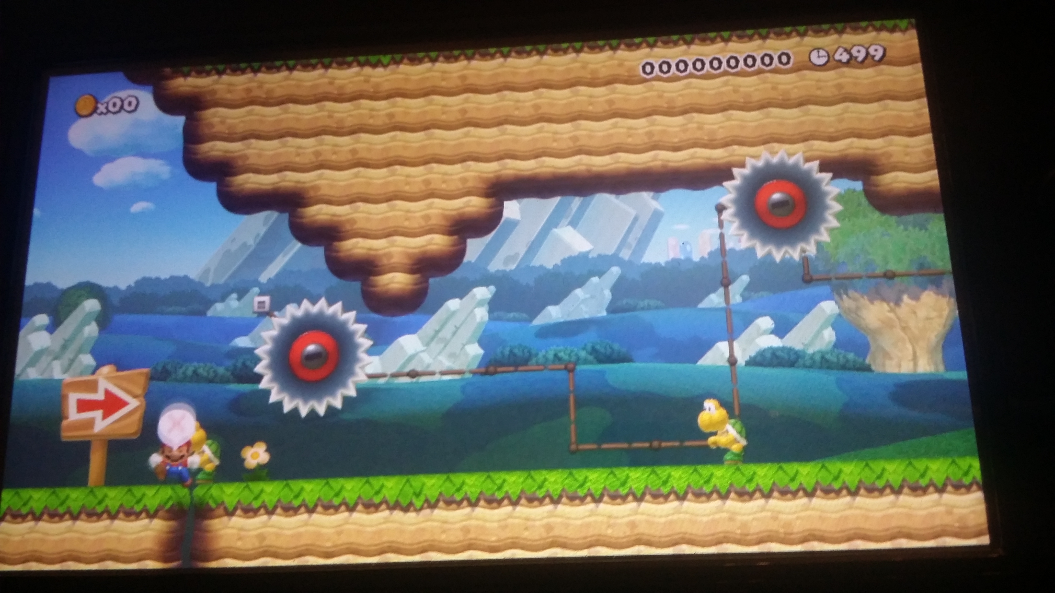 Sandra: Celine’s level heeft mij echt gebroken. Volgens mij is dit de eerste keer dat ik het opgegeven heb de finish te halen. Het begin van het level is wel goed te doen met de zaagbladen maar al gauw lijk ik niet verder te kunnen: er is een stuk waar je door spikes moet lopen om verder te komen, maar zonder power-up ga je meteen dood. Die had ze heel vernuftig verstopt (welke ik niet ga verklappen)! Het echt frustrerende bij dit level is de gigantische sprong die je met je propellorhoedje moet maken. Ik heb geprobeerd en geprobeerd maar iedere keer moet je ook het hele begin nog een keer doen. En iedere keer kwam ik tegen het blokje van de finish aan, maar sprong Mario er nét niet op en viel ik de afgrond in. Na heel lang proberen heb ik het opgegeven. Celine, hoe heb je ooit dit spel kunnen uitspelen om het te publiceren? Wat was je geheim?