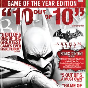 Maar de grootste fout aan deze hoes is natuurlijk dat genadeloze opscheppen. Vindt Rocksteady de mening van GameInformer en G4TV belangrijker dan hoe de game heet? Dat vreemde vakje met bonus content is ook veel te klein en niet zo mooi voor de tand des tijds: “Download redeemable from Xbox Live only. Expires March 31st 2013.” En dan ook nog klein en dikgedrukt eronder “Internet Connection Required”. Too much information!