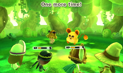 In een typische RPG-spel ga je op pad. Je kan kiezen voor alleen of in teamverband tot een max van 4 Mii’s. Onderweg kan je gehinderd worden door monsters. Deze monsters zien er heel speels uit wanneer ze Mii-gezichten dragen. Wat denk je van een dansende paddenstoel met vrouwelijke ogen of een mol met een brede glimlach. Dit kan soms voor hilarische momenten zorgen. Dat maakt de gevechten wel luchtig.