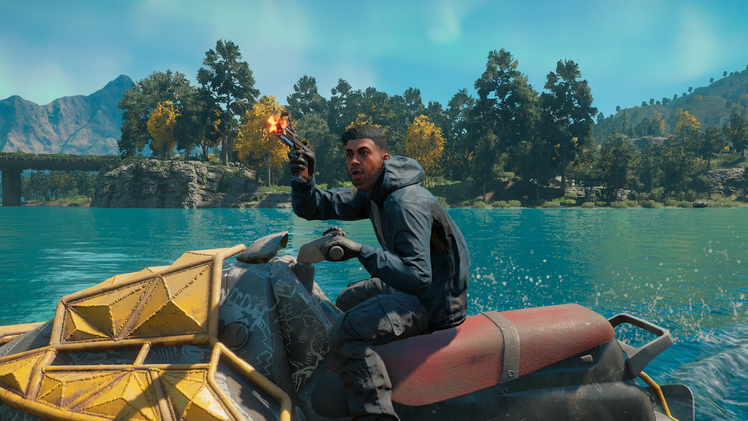 Far Cry staat wel bekend om zijn grafisch goede games en dat is hier ook wel weer gelukt. De vele bebossing, rondrennend wild, helder (of smerig) water en personages zien er allemaal geweldig uit. Zo’n voertuig komt dan nog wel van pas als je gewoon rustig rond wil rijden en van de omgeving wil genieten. Je komt echter wel vaak en veel vijanden tegen en dat is dan wel storend, echt genieten is er dan niet bij. Wat je wel kunt doen is een soort foto omgeving creëren, wat je soms hilarische momenten kan bezorgen aangezien je de gezichtsuitdrukking van je eigen personage kunt aanpassen. Je kunt je personage bij de start van de game naar wens aanpassen met verschillende looks, welke je uiteindelijk met in-game currency kunt aanpassen naar hartenlust. Er zijn verschillende zaken die hierin belangrijk zijn om te noemen. Allereerst heb je materiaal wat je kunt verzamelen om bepaalde dingen te ontgrendelen of upgrades te kunnen doen aan Prosperity. Dan heb je nog Far Cry Credits, die je zowel met geld kunt kopen of door schatten te vinden. Die schatten zijn alleen niet oneindig, dus er is maar zoveel om te vinden. Dit zit me denk ik nog wel het meeste dwars, want een game van al €60,- bij de release vraagt ook nog eens geld voor het leveren van shortcuts. Ze vragen bijvoorbeeld zo’n €10 voor 1000 credits. Ik dacht dat we dit toch wel een beetje afgeleerd hadden inmiddels. Van die Credits kun je wapens of voertuigen kopen zonder dat je er al te veel moeite voor hoeft te doen. Gemiddeld ben je ongeveer 400 tot 500 credits kwijt voor de betere wapens. Je hebt het in principe niet nodig, maar wat je hiermee versnelt levert je wel veel op en daardoor kan ik me voorstellen dat het zeer verleidelijk is om deze shortcut dan toch maar te nemen.