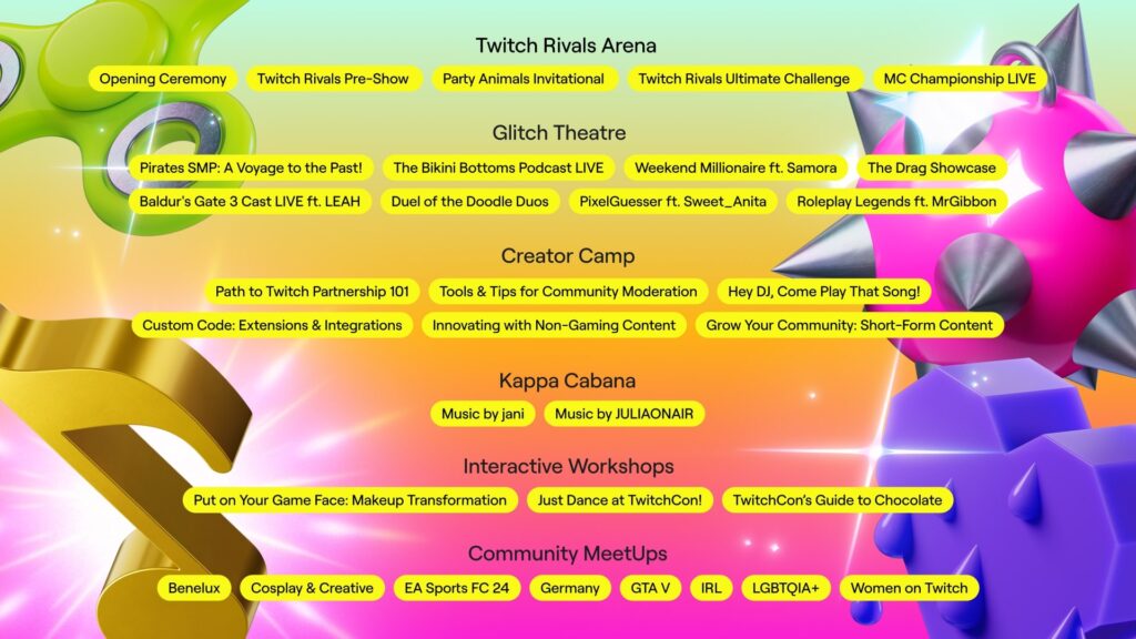 TwitchCon is hét evenement op het gebied van livestreaming. Het evenement staat heel het weekend in het thema van verbinding, creativiteit, competitief gamen en plezier. Hier ontmoeten duizenden streamers, kijkers en merken elkaar. TwitchCon Europe biedt meerdere podia, een volle beursvloer, interactieve workshops, IRL meet-and-greets, een tabletop gaming-ruimte en nog veel meer.