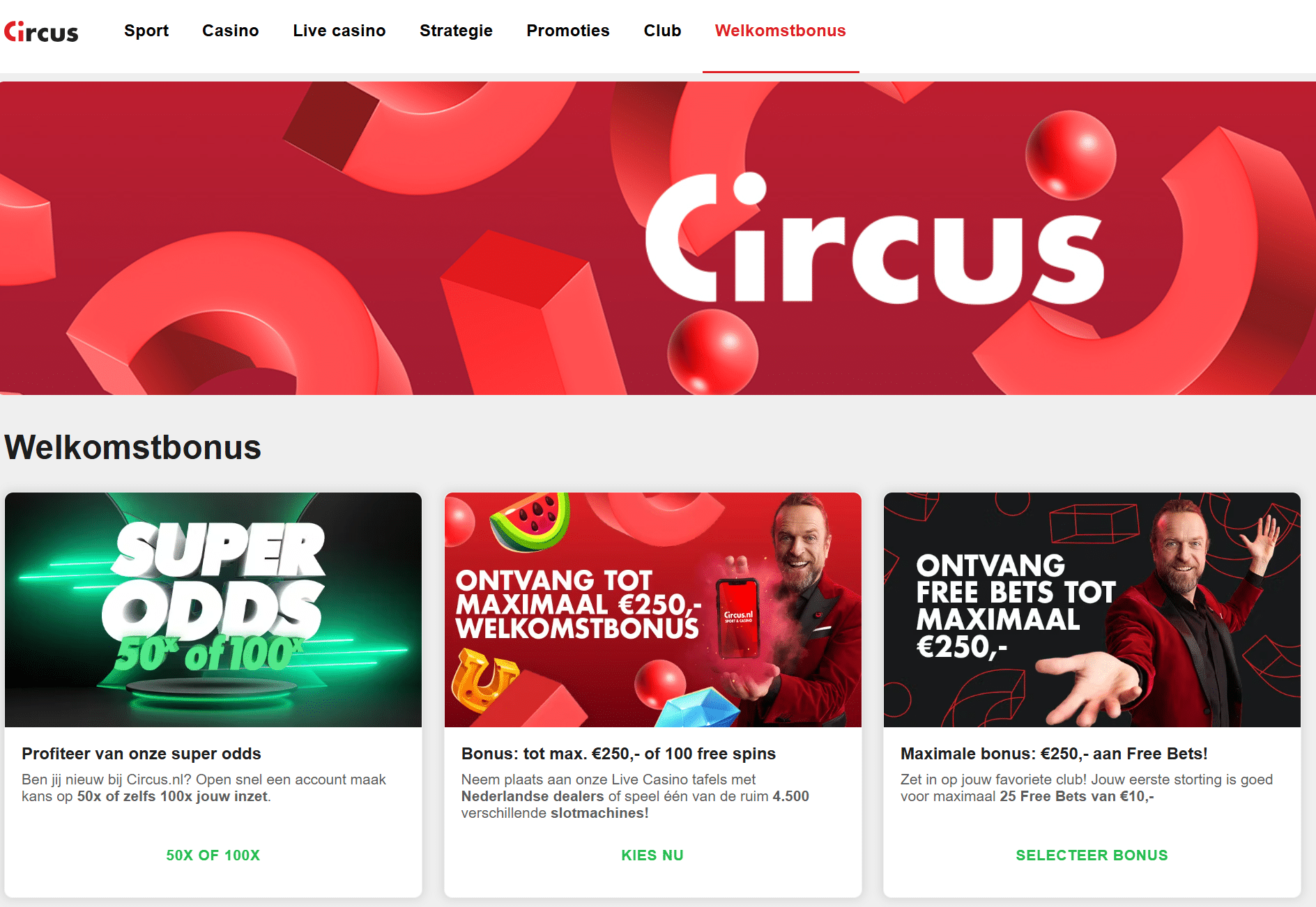 | Keuze: (1) 100% tot € 100 of (2) 250 spins na € 25 inzet of (3) € 20 live bonus | 30x inzetten | € 0,01 (eerste storting) / € 10 daarna |